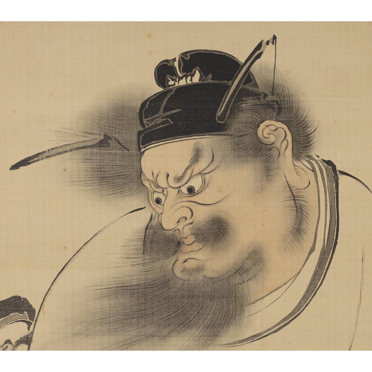 是真の作品にはユーモアに溢れ、江戸の「粋」を感じさせる作品が多くあるが、本作品「圓窓鍾馗」はまさにその典型例とも言える優品である。特に「圓窓鍾馗図」は大名から庶民にいたるまで幅広い人気があったため、江戸東京博物館に収められている「粉本 鍾馗鬼図」(図5参照)のような下絵をもとに複数の同手作品が制作されており、そのアイコニックな作風から、前出した「 柴田是真 - 対柳居から世界へ - 」の展覧会チケットやポストカードでも採用されている(図6参照)。
