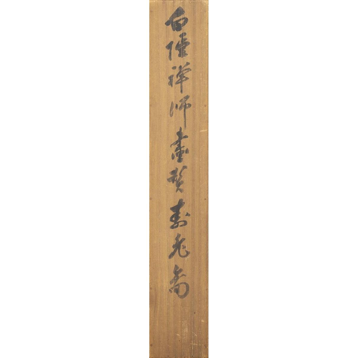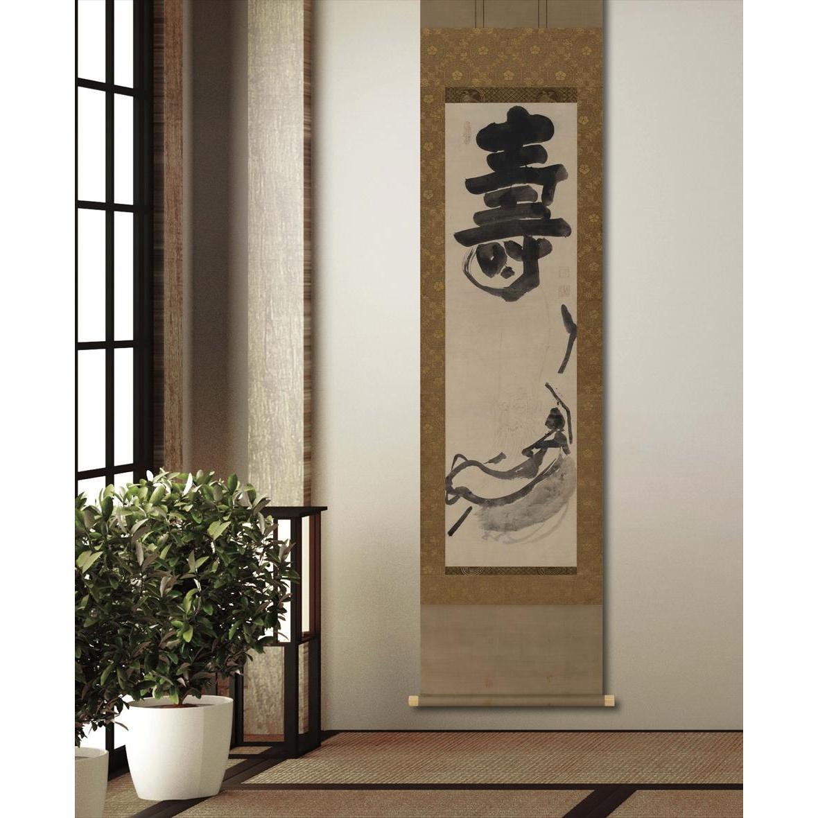 白隠の禅画を自らの空間に招き入れるという行為は、単なる美術品の収集を超えた、精神的な豊かさへの投資ともいえ、本作「寿老人」を眺めるたびに、力強い「寿(いのちながし)」の文字から活力を得て、その下で微笑む寿老人の長い頭部に人生のゆとりを重ねる。