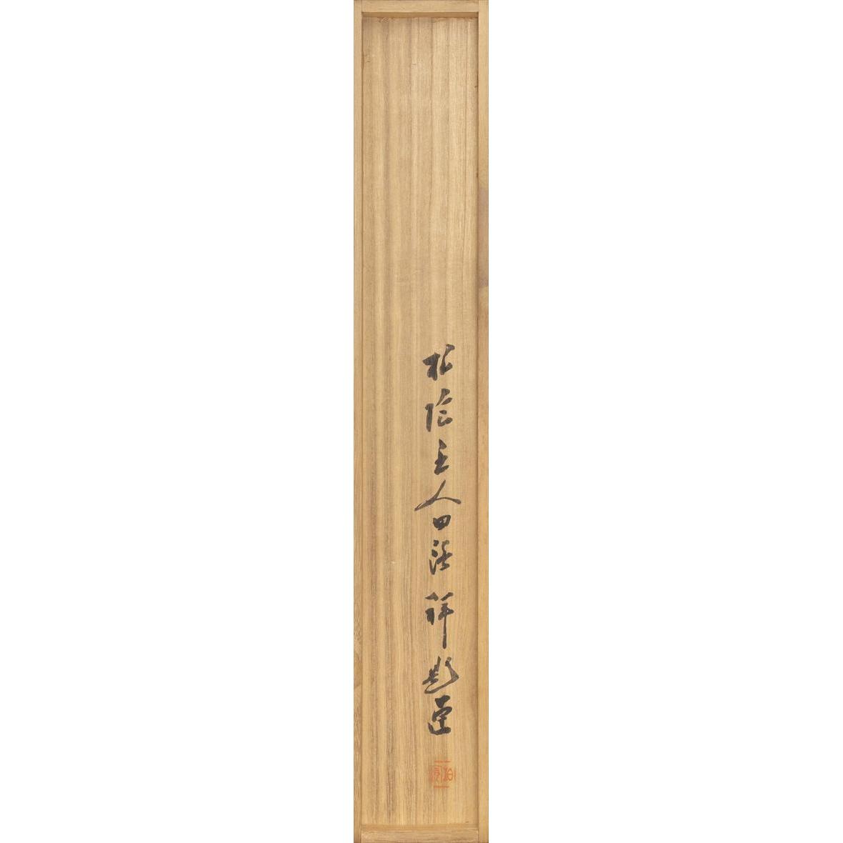 また、本作には近代南画界の泰斗であった田中柏陰による箱書きがなされているだけではなく、2024年に山種美術館で開催された『特別展 HAPPYな日本美術 伊藤若冲から横山大観、川端龍子へ』への出品歴を有しているという点でその真性が担保されている。