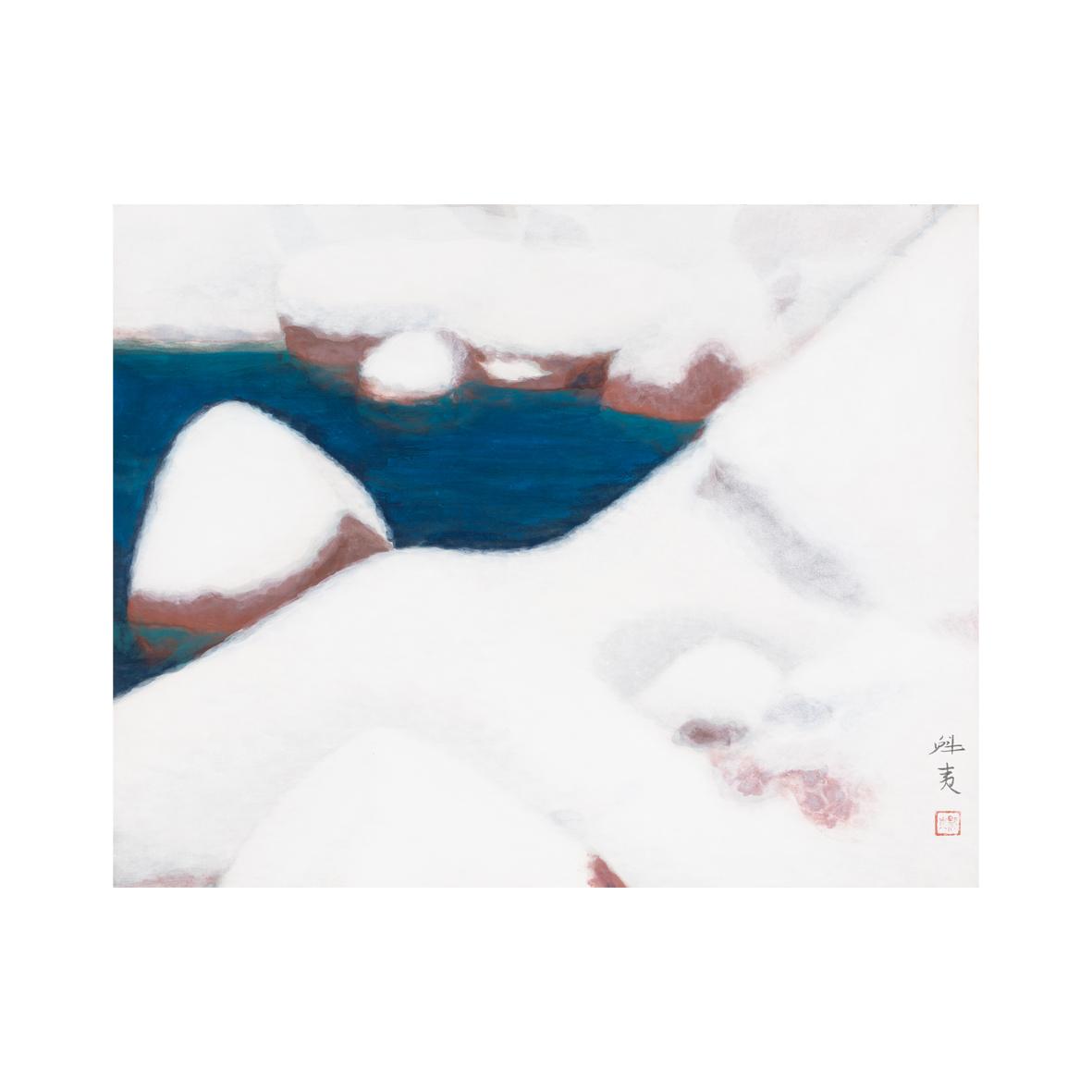 さらに特筆すべきは、本作が持つ美術史的な連続性である。東山はこの「雪渓」において、雪と水流の形態的探求を深化させ、その3年後には、東京国立近代美術館所蔵の名作「たにま」を完成させる。文献でも指摘されている通り、「たにま」に見られる、抽象化され、象徴性を増した造形美の源泉は、間違いなく本作「雪渓」にある。その意味で、本作は単独の作品として完成されているだけでなく、東山が至高の画家へと昇り詰める過程における、極めて重要な「思考の種」が宿った作品であるともいえるのである。